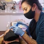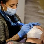 Permanente make-up eyeliner wordt toegepast door middel van een PMU apparaat met een naald module. Met kleine bewegingen wordt het pigment onderhuids aangebracht.