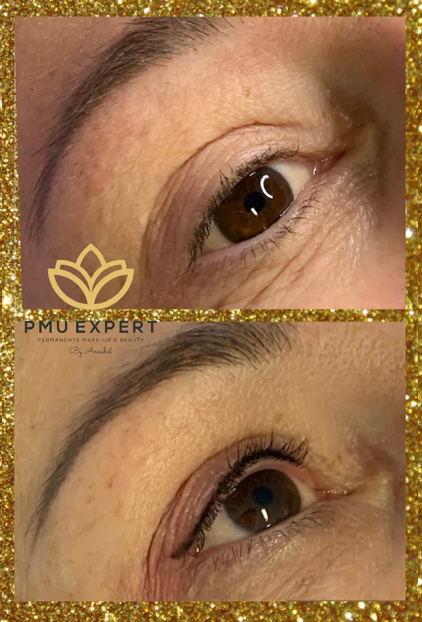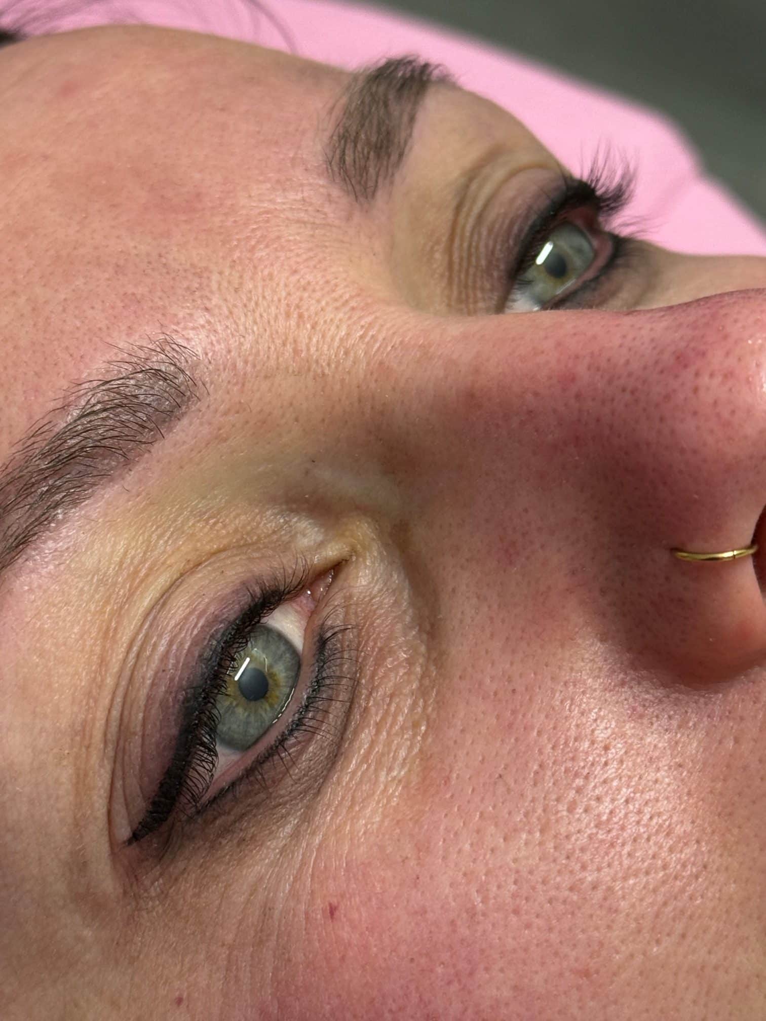 Er wordt pigment in de huid van de wimperrand aangebracht. Een eyeliner geeft een mooie open blik, waardoor de ogen groter lijken, en de wimpers voller.